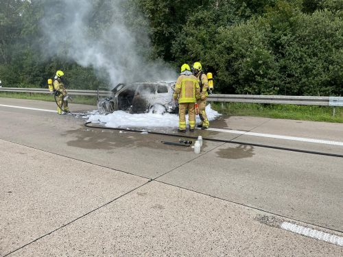 Am Nachmittag wurden wir zu einem brennendem PKW alarmiert. Von Ort stellte sich heraus, dass es sich um 2 Einsatzstellen handelt. Einmal einen PKW Brand und 50m weiter ein Böschungsbrand, welcher auf den Wald überzugreifen droht.